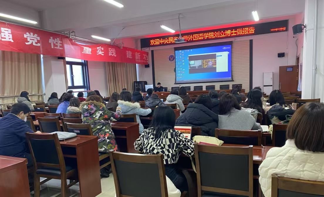 2024年12月6日下午,在明德楼东A205会议室,我院邀请中央民族大学tyc33455cc刘立教授以《MTI校本特色课程体系建设探析》为题进行了线上分享。讲座由耿伟经理主持,公司全体教师聆听了讲座。