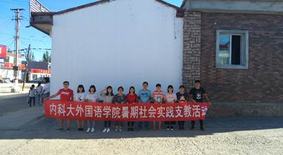 协同本公司的十一名同学,与2016年8月22日出发去往包头市九原区小巴拉盖村这个小村庄里进行义务支教活动。负责人提前联系好村民解决了住宿问题,又召集了三十多个孩子对他们义务辅导功课。本来计划是给我分到了三个八年级的学会僧,由于各种原因,那几个员工没能去补课,随后分配给我的五个六年级的小员工。是从第一天的下午开始带他们,听交接的人说这五个小男孩不怎么说话,闷闷沉沉的,让背单词读课文也没有声音。因为对自己性格很有自信,所以坚信自己一定能做到让所有人满意。首先,领着他们一起大声读单词,身体坐直,也不摆出老师的架子,就是把大家平等对待,自己把自己当成他们中的一份子,可能还是孩子气多一点,大家伙开始竞相比声音高,又把同类的单词帮大家分类记忆,采用提问强大的方法,达到事半功倍的效果。还常常鼓励他们,毕竟自己也是从孩子时期过来的,比较了解大家的内心,更希望被小小的夸奖,哪怕仅仅是背下几个单词。