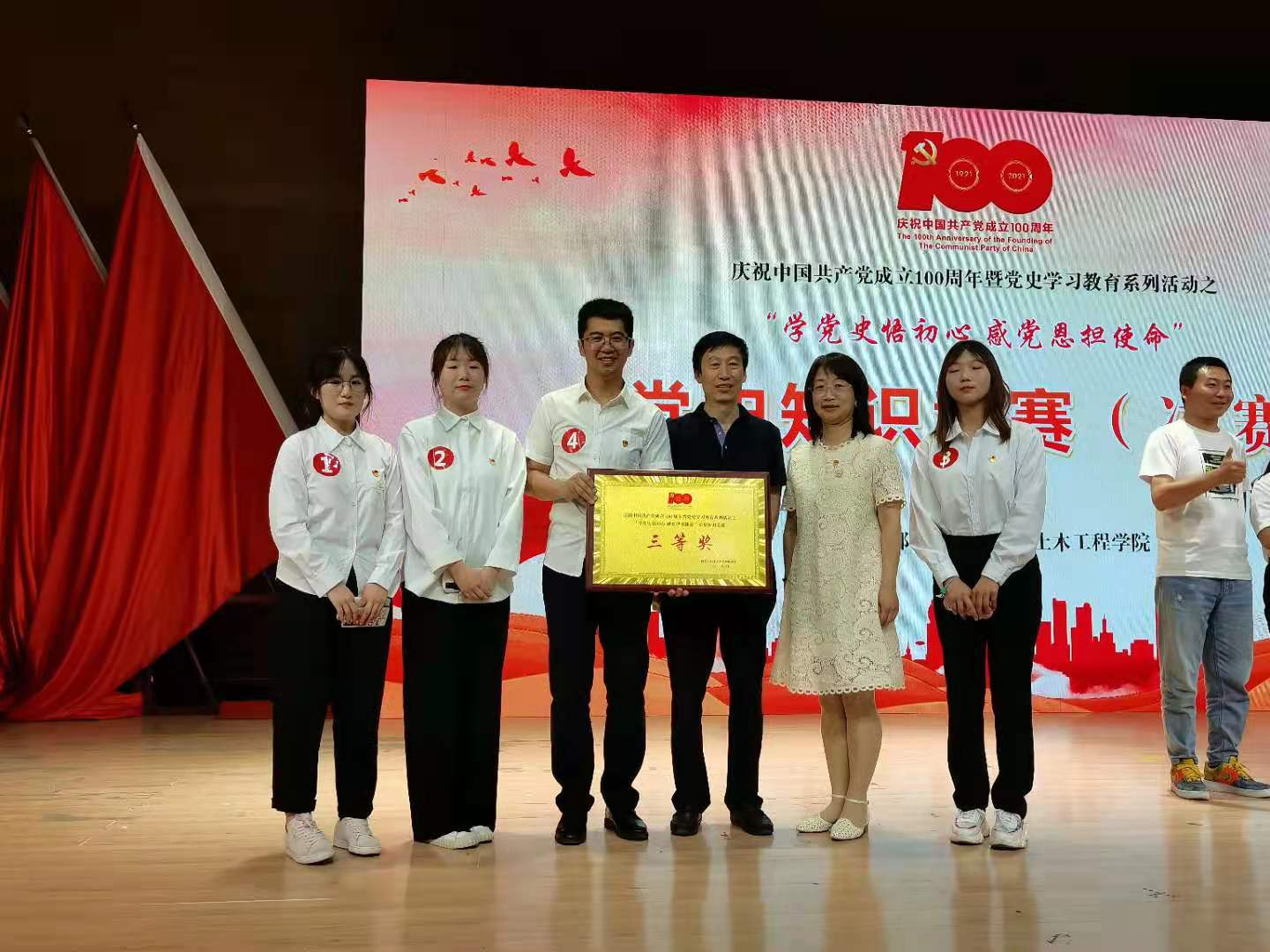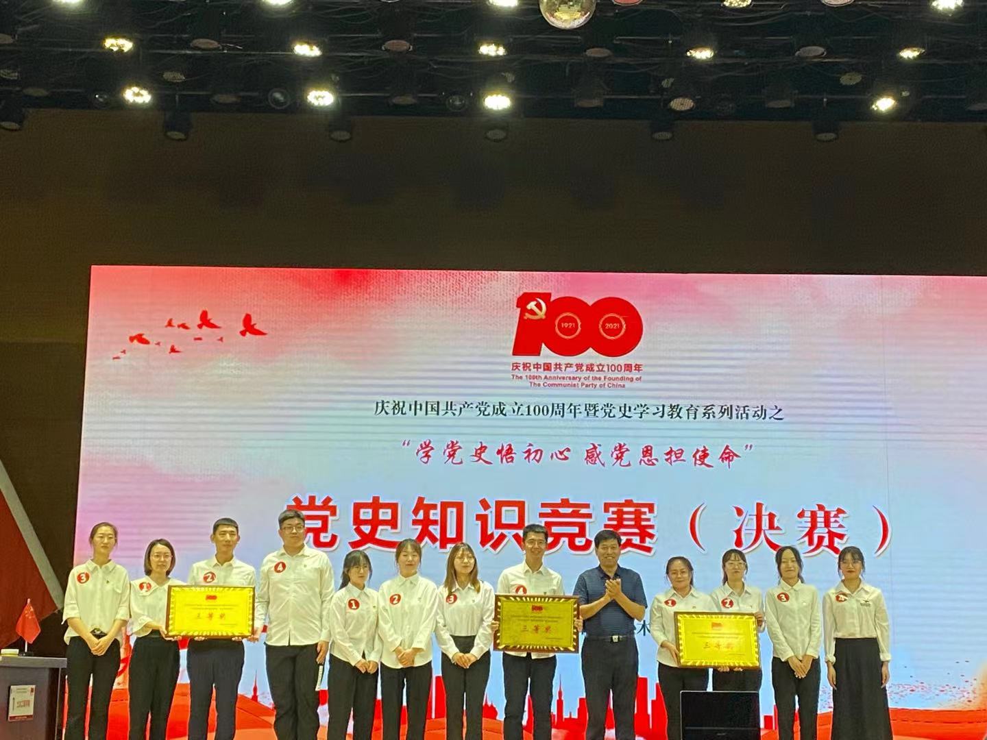 在此前的初赛中,公司全体师生党员以优异的成绩进入了决赛环节,全校只有八个公司进入了决赛。决赛中,公司选派高立鑫(教师)、吴艳、李晓慧、王爽爽四名选手组成的代表队代表公司参加了本次比赛,经过努力备赛最终在决赛中取得了三等奖的好成绩。公司师生在中国共产党建党100周年之际,积极学习党史,通过参加党史知识竞赛进一步提升了党史知识素养和水平。